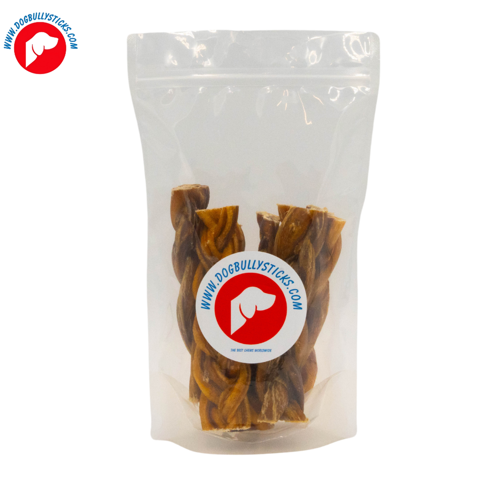 Our 6-inch Braided Bully Stick is 100% all-natural and made from one single ingredient with no additives or fillers. The braided design creates a longer-lasting chew that helps clean teeth and reduce plaque and tartar while satisfying your dog’s natural chewing instincts. High in protein, easy to digest, and a favorite among dogs of all sizes.
